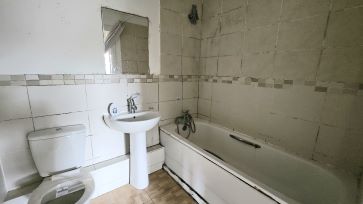 With full size bath, sink unit, WC, heated towel rail and part tiled walls