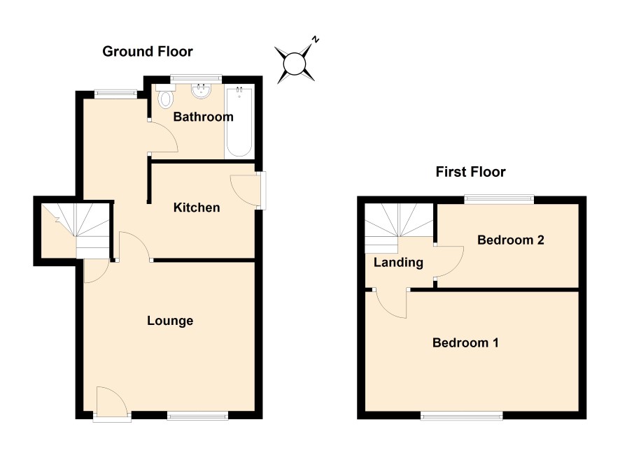 GROUND FLOOR Lounge: 14 ft 1 in max x 12 ft 7 in Kitchen: 10 ft 7 in max x 7 ft 6 in Utility: 8 ft 3 in x 4 ft 1 in Bathroom: FIRST FLOOR Bedroom 1: 16 ft 10 in max x 9 ft Bedroom 2: 10 ft 11 in x 6 ft 9 in