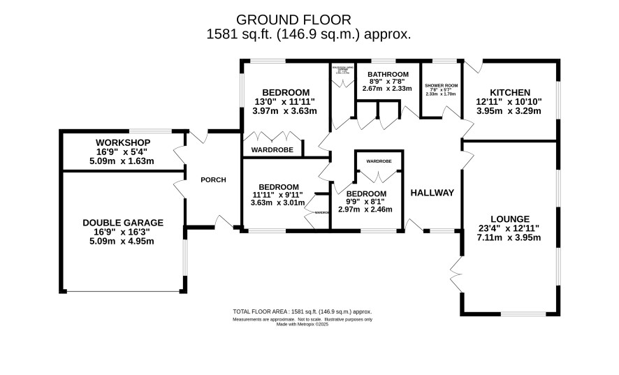 Hall, lounge, kitchen/breakfast room, three bedrooms, study/bedroom 3, bathroom, separate shower room.