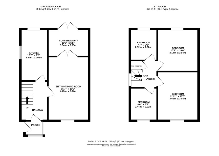 Landing with doors off to Bedroom 1 Bedroom 2 Bedroom 3 Bathroom Separate WC