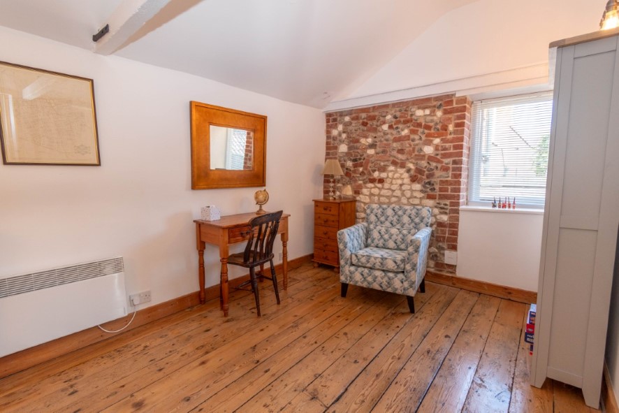 Grade II Listed barn conversion built of brick and flint walls under a pantiled roof, and situated on the High Street in Wells-next-the-Sea. in a highly sought after residential Conservation Area lined with period properties, many of which are similarly Listed. The property has been renovated and refurbished over the years to offer well proportioned accommodation comprising to the ground floor impressive open plan kitchen/dining/living space with a utility/cloakroom off. Upstairs there is a spacious landing with a study area, 2 double bedrooms and a luxury shower room. The principal bedroom also offers scope to divide creating a third bedroom (subject to the necessary permissions). The property has many interesting features such as vaulted ceilings with exposed beams and floorboards, a wood burning stove in the living space, latch internal doors, sash window and a Juliette balcony to bedroom overlooking the garden. Outside, there is an attractive low maintenance garden which wraps around the property to the front and side. The centre of town just a short stroll away, would make an ideal permanent home close to amenities or a character second home with holiday lettings potential.
