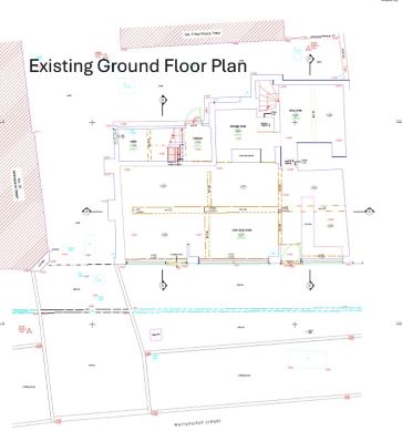 Two separate sections currently: Side A: Open-plan layout with stairs from rear, kitchen, and toilet off the landing Side B: Two rooms and a toilet, separated by a solid wall