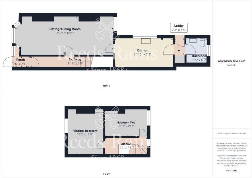 Ground Floor Entrance Porch Approached from the front through a part-glazed entrance door. Useful space with a further door leading into the entrance hall. Entrance Hall Staircase approach leading ahead of the first floor level. Original ceiling coving. Corbels. Door leading through to the: Sitting/Dining Room 25'1" x 10'1" (7.65m x 3.07m) Enjoying dual aspects with a walk-in bay window facing the front and at the opposite end a rear facing window. Original ceiling coving. Two gas fires. Understairs storage cupboard. Door leading into the: Kitchen 14'10" x 7'9" (4.52m x 2.36m) With a side facing. Sizeable kitchen with a range of traditional base and wall mounted cabinets with contrasting countertops. Inset stainless steel sink unit. Panelled ceiling with inset spotlights. Rear Lobby 4'5" x 2'8" (1.35m x 0.81m) With a double-glazed entrance door leading outside. Door leading through to the bathroom. Built-in storage. Bathroom 6'9" x 5'6" (2.06m x 1.68m) With a rear facing window. Appointed with a three-piece coloured suite comprising panelled bath, wash hand basin and low flush WC. Ceramic tiled splash-backs. First Floor Landing 12'2" x 4'11" (3.7m x 1.5m) With a small rear facing window. Central landing area with original panelled doors that lead off to each of the two bedrooms. Principal Bedroom 12' x 10'5" (3.66m x 3.18m) Front facing double-bedroom. Bedroom Two 12'3" x 7'10" (3.73m x 2.4m) Rear facing bedroom.