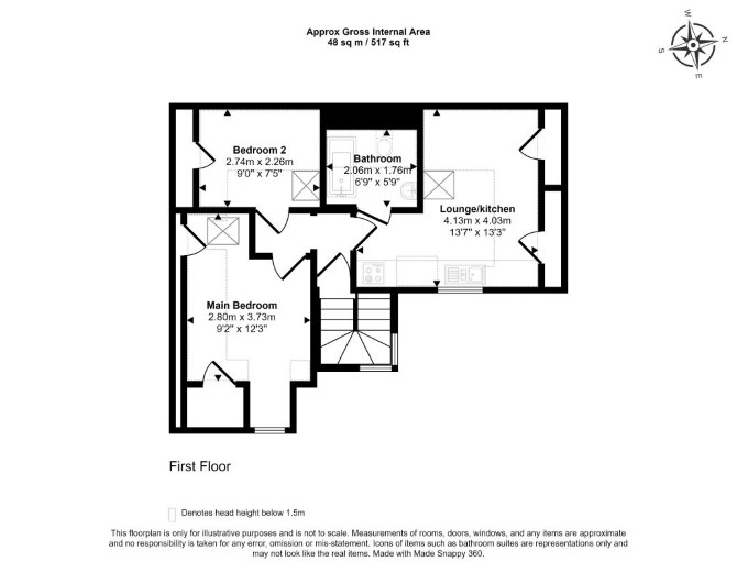 Second Floor Reception Room with Open-Plan Kitchen Two Bedrooms Bathroom