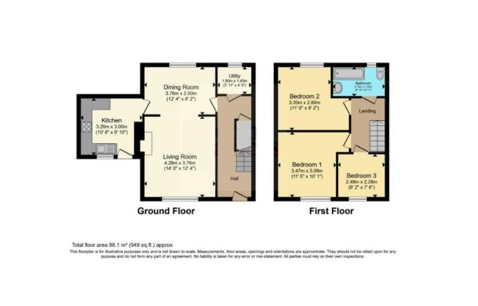 The property comprises a three bedroom semi detached house arranged over ground and first floors.