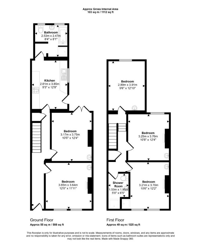 Ground Floor Two Rooms Kitchen Bathroom First Floor Three Rooms Bathroom