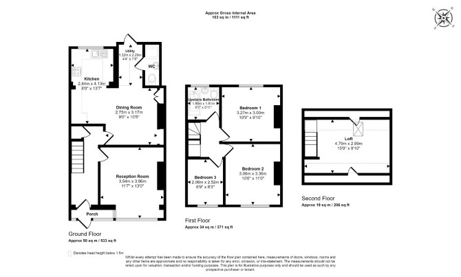 Ground Floor Two Reception Rooms (One with Open-Plan Kitchen) Bathroom First Floor Three Bedrooms Bathroom Second Floor Loft Space