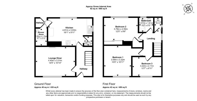 Ground Floor Reception Room Kitchen WC First Floor Three Bedrooms Bathroom Separate WC