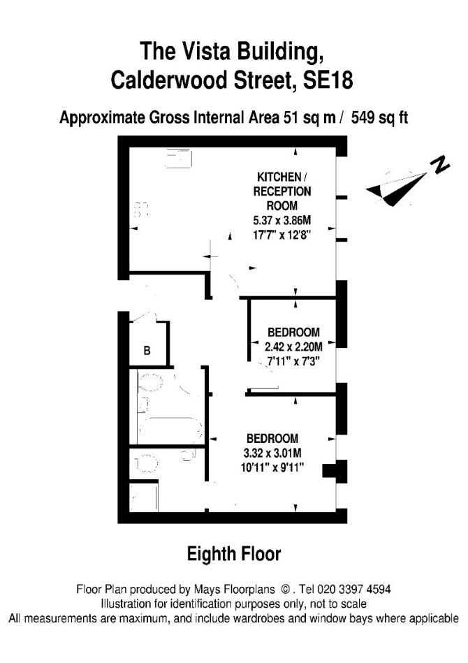 Eighth Floor Open Plan Reception/Kitchen Room Two Bedrooms (One with En-Suite) Bathroom