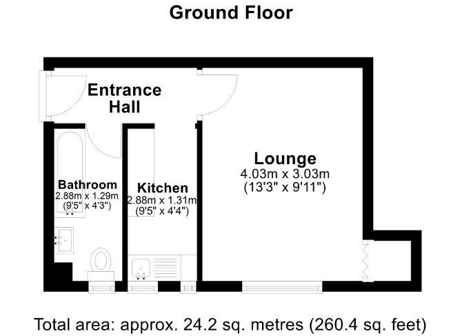 The property comprises a first floor studio flat situated within a purpose built block arranged over ground and two upper floors.
