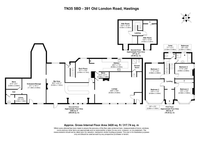 Lower Ground Floor Cellar Storage Room Ground Floor Bar Area Kitchen WC's Store Rooms First Floor Four Bedrooms Bathroom Separate WC Second Floor Two Bedrooms