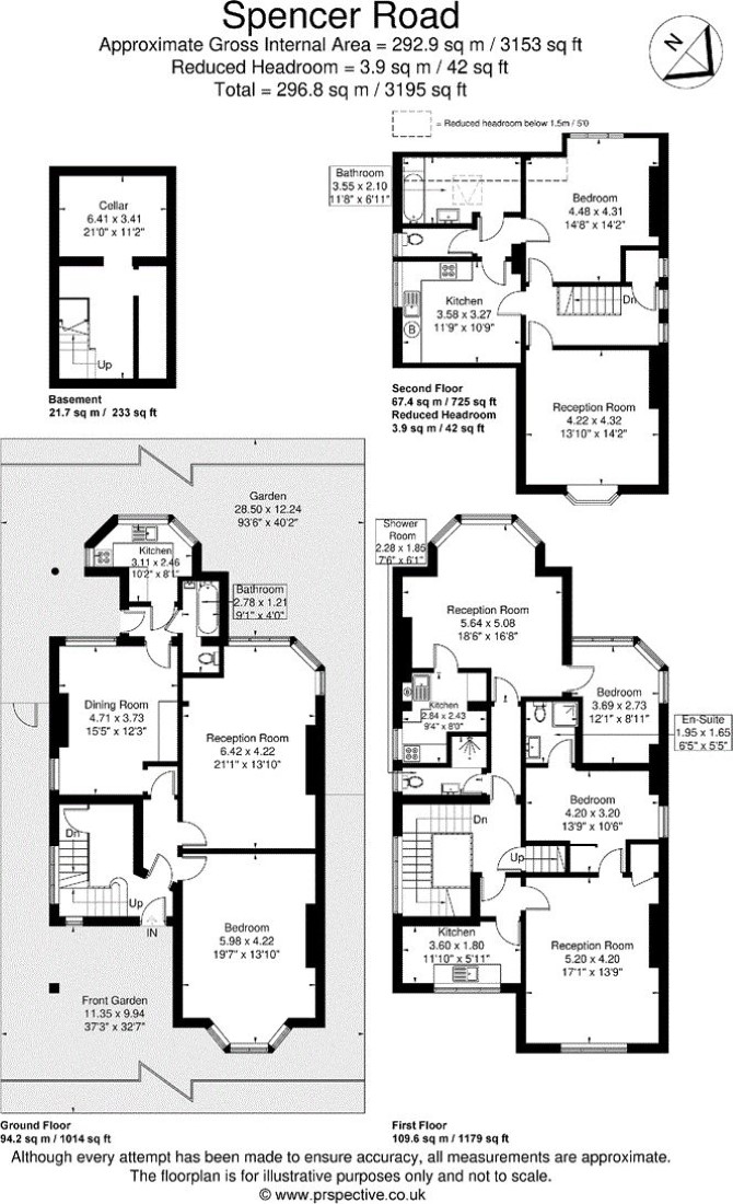 Lower Ground Floor Basement G.I.A. Approximately 21 sq m/ 233 sq ft Flat 1 - Ground Floor Reception Room Kitchen Two Bedrooms Bathroom G.I.A. Approximately 94 sq m/ 1,014 sq ft Flat 2 - First Floor Reception Room Kitchen Bedroom Bathroom G.I.A. Approximately 54 sq m/ 590 sq ft Flat 3 - First Floor Reception Room Kitchen Bedroom Bathroom G.I.A. Approximately 54 sq m/ 590 sq ft Flat 4 - Second Floor Reception Room Kitchen Bedroom Bathroom Separate WC G.I.A. Approximately 63 sq m/ 725 sq ft Total G.I.A. Approximately 286 sq m/ 3,078 sq ft