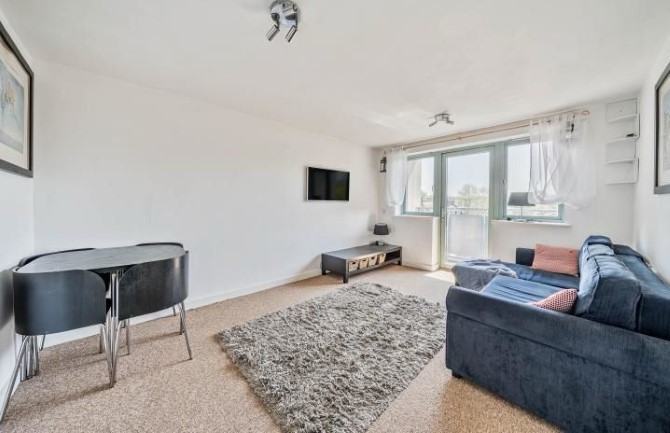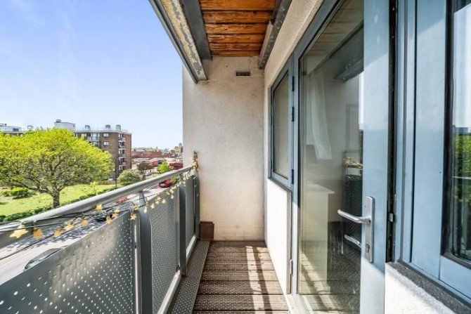 The property benefits from a private balcony, allocated parking and communal gardens.