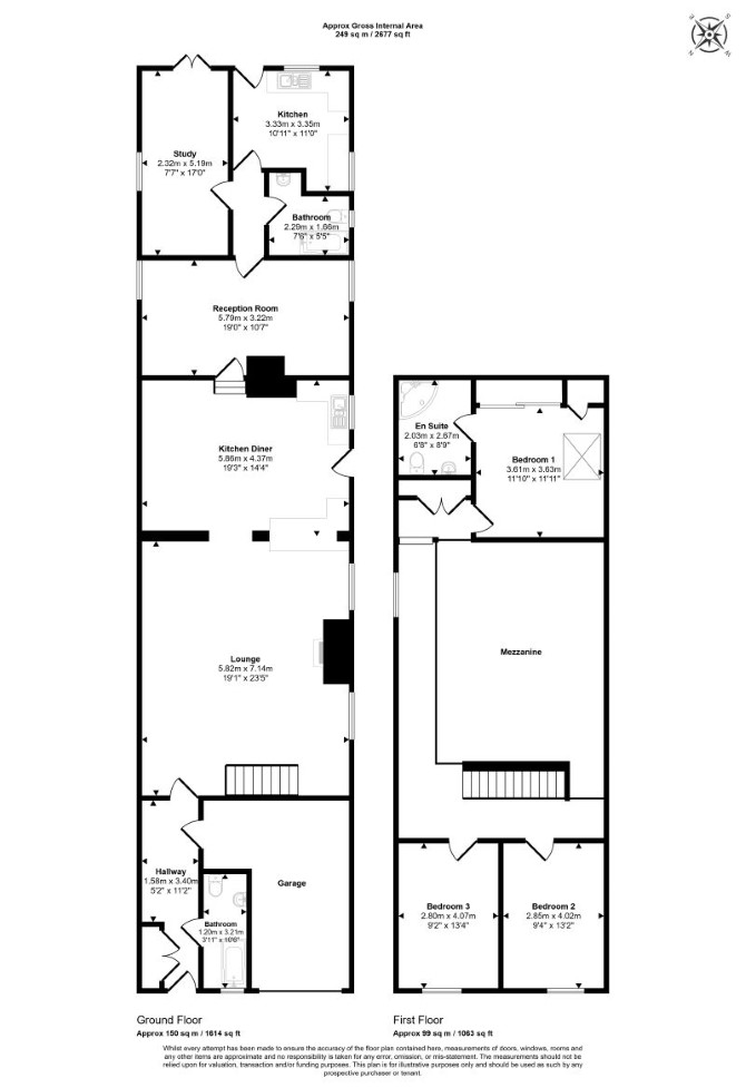 Ground Floor Four Reception Rooms Kitchen Bathroom First Floor Three Bedrooms (One with En-Suite) Approx. G.I.A 249 sq m / 2,677 sq ft