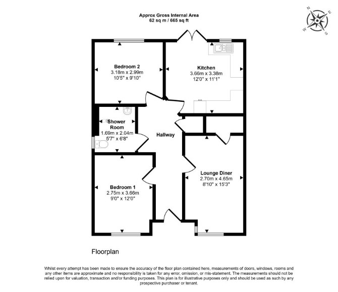 Ground Floor Reception Room Kitchen Two Bedrooms Bathroom G.I.A Approximately 65 sq m