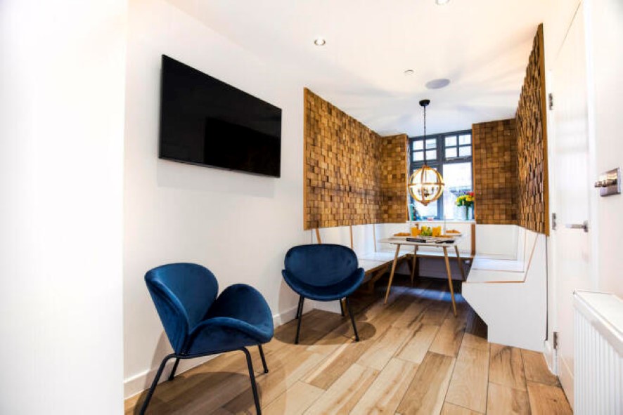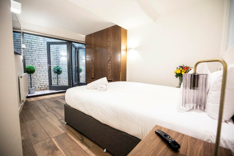 -: Lower Ground Floor – Spacious double bedroom with bi-fold doors to outside courtyard. Connected to bathroom with 4 piece suite including stand-alone bath and walk in shower. Utility Room with whb and central heating boiler cupboard Ground Floor – Entrance hall with WC off Shower room Family bedroom with bi-fold doors First Floor – Another spacious double bedroom with dressing area and en-suite shower room andc additional storage beyond. Second Floor – Open plan kitchen and dining area. Integrated, environmentally friendly appliances, and a separate kitchen island provides further space for cooking, eating and entertaining. Third Floor – Living Area which leads out through bi-folding doors onto a stunning roof garden which sets the property apart and offers a tranquil area to escape the hustle and bustle of city centre life overlooking Manchester and John Rylands Library