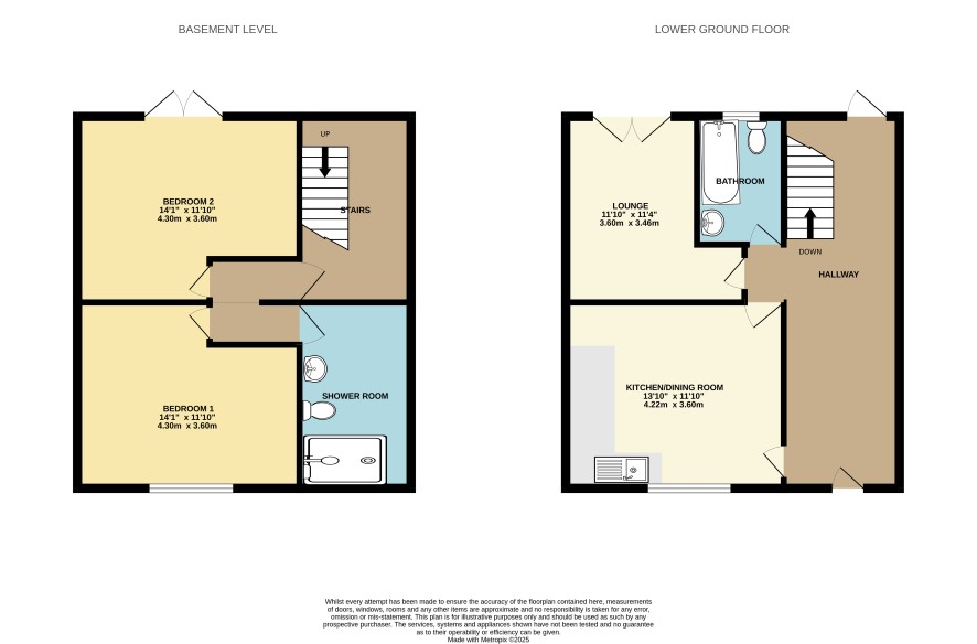 LOWER GROUND FLOOR Entrance Hall Lounge - 11'10" x 11'4" (3.60m x 3.46m) Kitchen/Dining Room - 13'10" x 11'10" (4.22m x 3.60m) Bathroom Stairs/Hall area BASEMENT LEVEL Bedroom 1 - 14'1" x 11'10" (4.30m x 3.60m) Bedroom 2 - 14'1" x 11'10" (4.30m x 3.60m) Shower Room