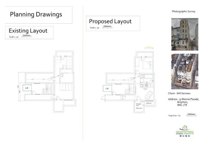 A planning application was submitted to Brighton & Hove City Council for internal alterations to layout for conversion of basement into a flat (C3) and replacement of grated grills with glass to 3no external lightwells. Listed building consent was granted on the 16th November 2023.