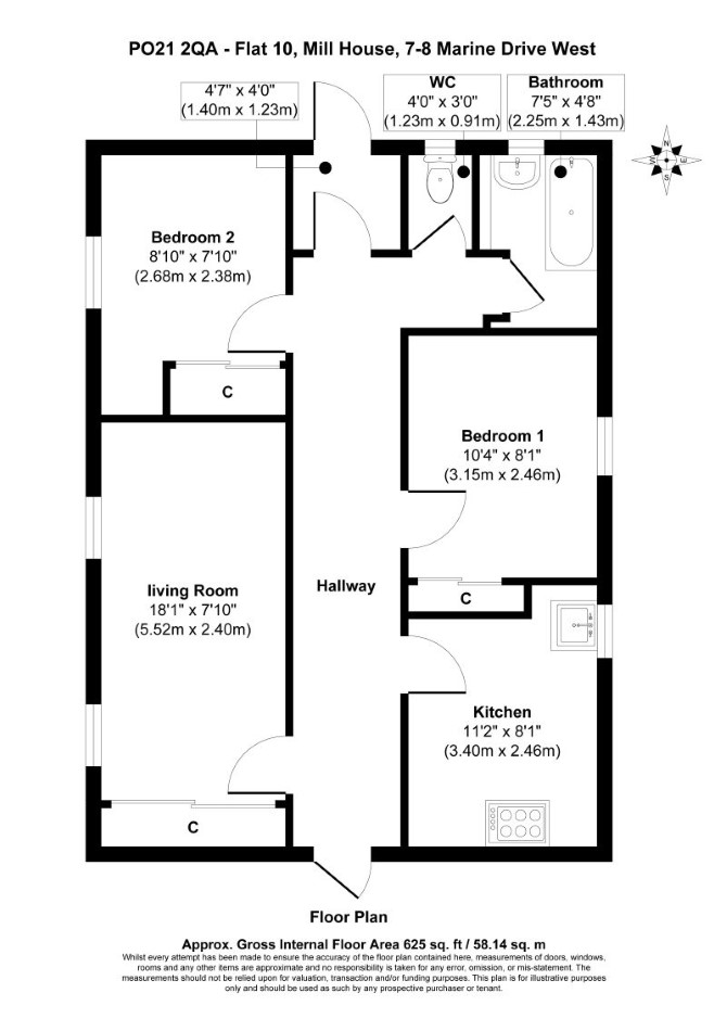 Vacant leasehold second floor flat comprising, living room, kitchen, 2 bedrooms and bathroom. The property is situated on the coastal road, across from the seafront.