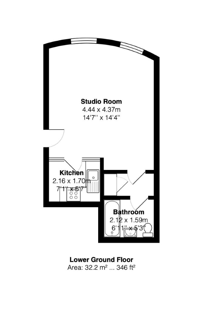 Leasehold self contained lower ground floor flat within a period conversion. Denmark Terrace comprises of a studio room, kitchen and bathroom.