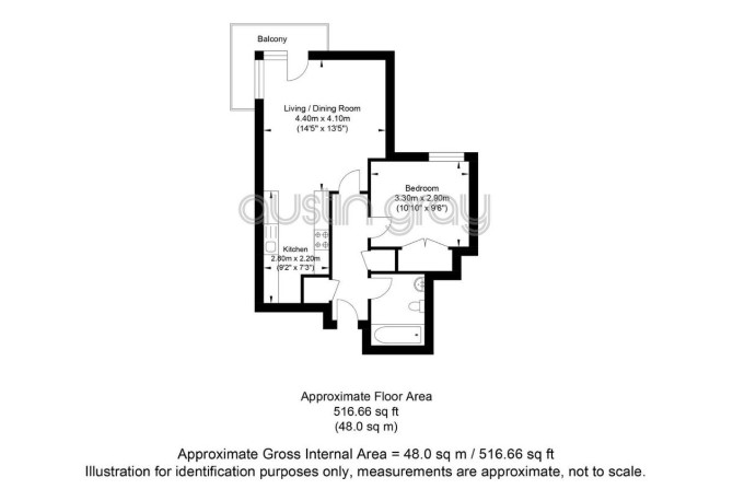 Leasehold 5th floor flat comprising, living/dining room (with Juliette balcony), kitchen, bedroom and bathroom. The property has the benefit of lift access.