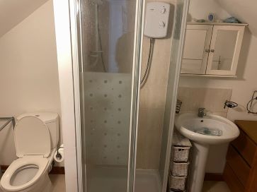 Lounge open to kitchen, shower room.