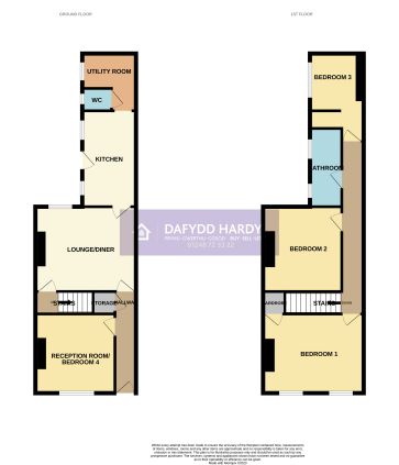 Hallway, reception room/bedroom 4, lounge/diner, kitchen, W/C, utility room.