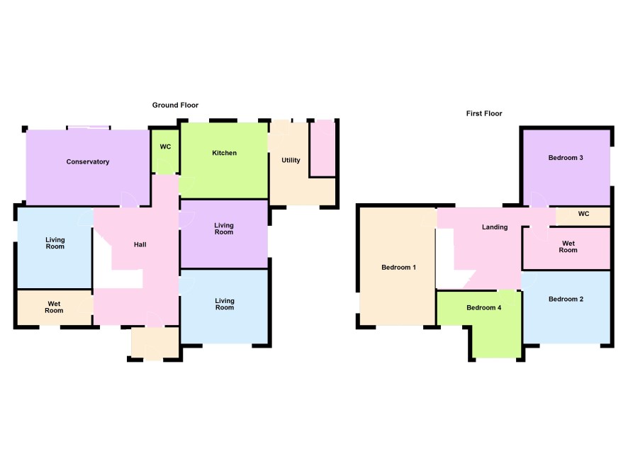 Fully Enclosed Porch with front door leading into Impressive Entrance Hall with spectacular staircase to first floor off and doors leading off to the following living accommodation:- Living Room One 3.6m x 4.2m, Living Room Two 4.2m x 3.3m, Living Room Three 3.9m x 3.6m, Kitchen 4.2m x 3.7m with range of fitted base and wall units with integrated appliances (not tested), door to Utility Room 4m x 3.2m max with Baxi gas fired central heating boiler. Leading from the hallway is a large Conservatory 6m x 3.6m with patio doors leading onto substantial rear garden, Wet Room, Separate W.C.