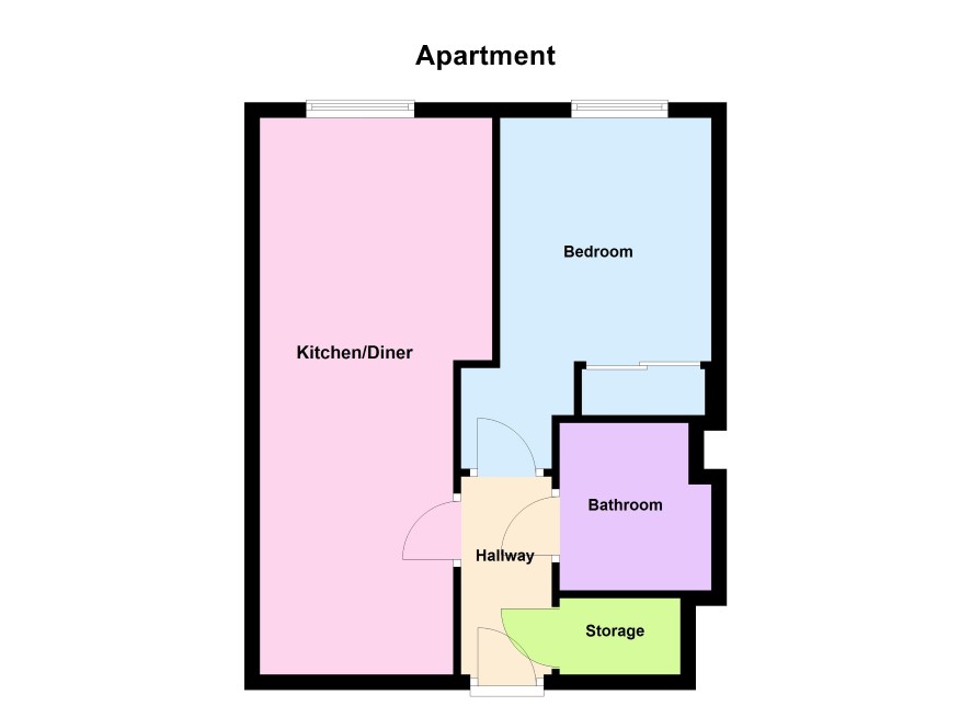 Front door to property leads to Hallway (2.59m x 1.19m). Hallway provides access to Kitchen / Diner (7.29m x 3.04m), Bedroom (4.59m x 2.78m), Bathroom (2.19m x 1.99m) and Hallway Storage (1.00m (d) x 1.58m).
