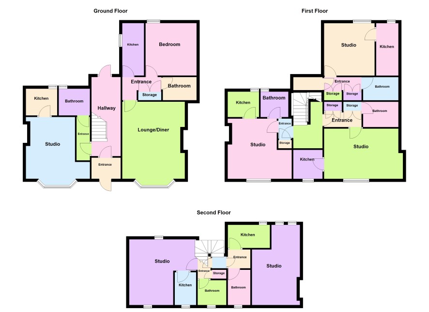 Flat 2: Studio (4.67m x 4.27m), Kitchen (1.77m x 2.07m), Bathroom (1.78m x 2.07m)