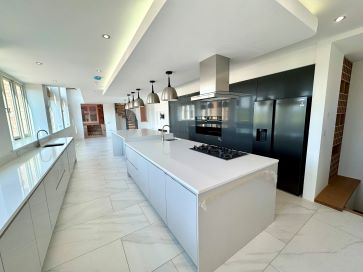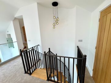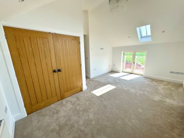 Accessed via two staircases, the upper floor features a mezzanine gallery landing with a glazed balustrade, rear-facing windows, built-in storage, and a discreet coffee station with sink and worktop. Master Bedroom (22'3" max x 20'8" into wardrobe recess): Includes a concealed dressing area with fitted wardrobes and: En-suite Bathroom (12'6" x 7'8"): Luxurious suite with freestanding bath, rainfall shower, vanity unit, and dual radiators. Bedroom Two (19'1" max x 15'10" max): Juliet balcony, built-in cupboards, and: En-suite Shower Room (10'10" x 6'9"): Spacious shower, vanity basin, WC, and chrome radiator. Bedroom Three (Same size as Bedroom Two): Dual aspect windows, storage, and matching en-suite as above. Bedroom Four (17'6" max x 11'10" max): Set off a second landing, with dual aspect views, built-in storage, and: En-suite Shower Room (7'1" x 6'9"): Modern fittings with tiled splashbacks and ladder radiator.