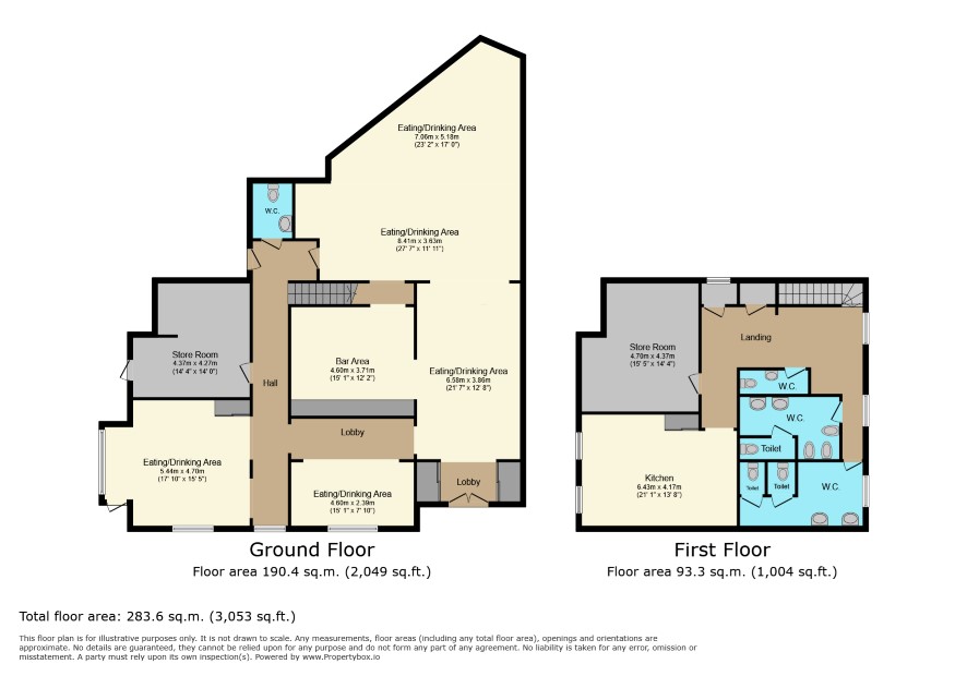 GROUND FLOOR - 1,653 sqft (approx) Open plan bar seating and dining area Store W.C. FIRST FLOOR - 476 sqft (approx) Kitchen Storage room W.C. Staff room
