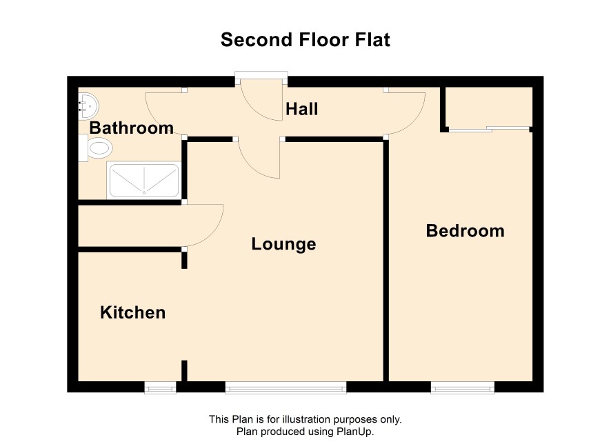 SECOND FLOOR Hallway: Lounge: 14 ft 3 in x 11 ft 6 in Kitchen: 7 ft 3 in x 5 ft 9 in Bedroom: Shower room