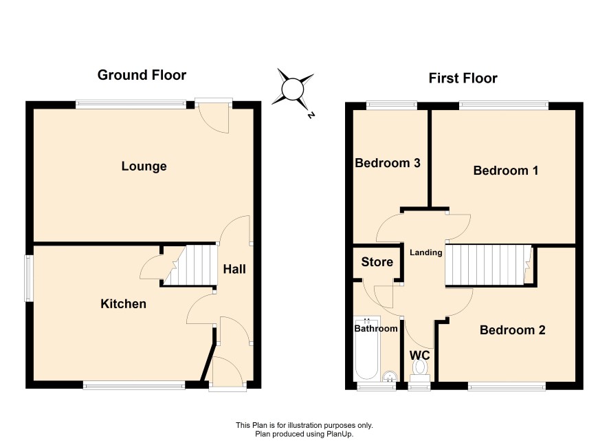 GROUND FLOOR Porch: Hallway: Lounge: 19 ft 9 in max x 11 ft 11 in Kitchen/diner: 15 ft max x 11 ft 1 in max FIRST FLOOR Bedroom 1: 11 ft x 12 ft 3 in Bedroom 2: 12 ft 6 in max x 11 ft max Bedroom 3: 11 ft max x 7 ft 2 in Bathroom: W.C.