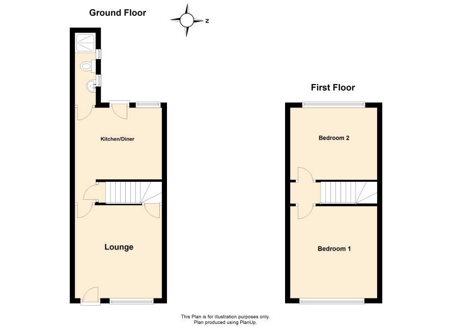 GROUND FLOOR Lounge: 12 ft 1 in x 11 ft 2 in Kitchen/Diner: 11 ft 3 in x 9 ft 3 in Shower room: FIRST FLOOR Bedroom 1: 12 ft x 11 ft 4 in max Bedroom 2: 11 ft 4 in x 9 ft 3 in
