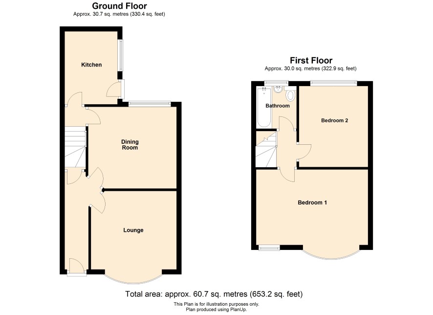 FIRST FLOOR Hallway: Reception room 1: 13 ft 8 in max x 11 ft 5 in Reception room 2: 11 ft 11 in x 10 ft 8 in Kitchen: 9 ft 5 in x 6 f 11 in SECOND FLOOR Bedroom 1: 14 ft 11 in max x 13 ft 7 in max Bedroom 2: 10 ft 9 in x 9 ft 5 in Bathroom: