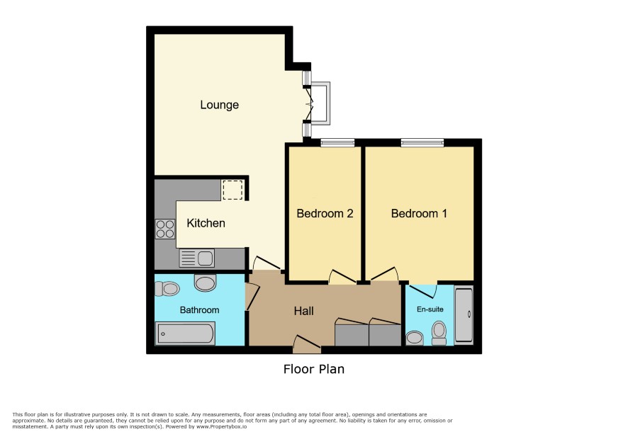 SECOND FLOOR Hallway: Lounge: 16 ft 4 in x 11 ft 7 in Kitchen: 10 ft 7 in x 7 ft 7 in Bedroom 1 plus ensuite: 13 ft 2 in x 10 ft 6 in Bedroom 2: 13 ft 2 in x 6 ft 3 in Bathroom: