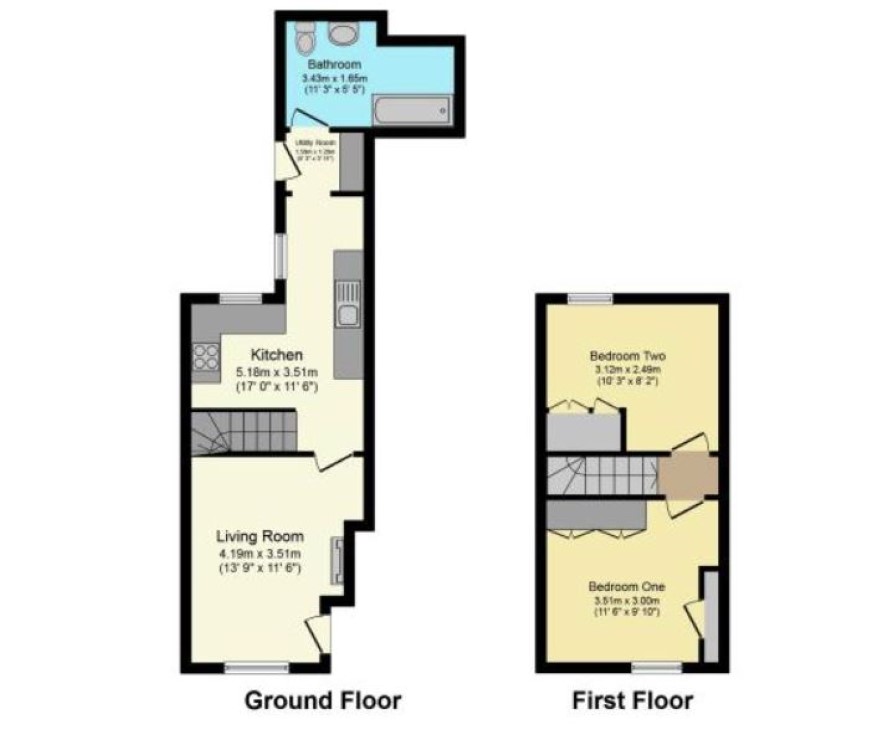 Front Bedroom 10'3 x 10' Rear Bedroom 10'3 x 8'