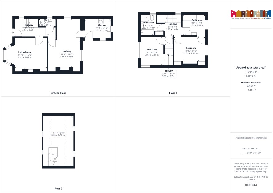 Landing Bedroom 11'10 x 9'6 with En-Suite 8'5 x 7'10 Bedroom 8'8 x 10'6 Bathroom 8'9 x 7'10