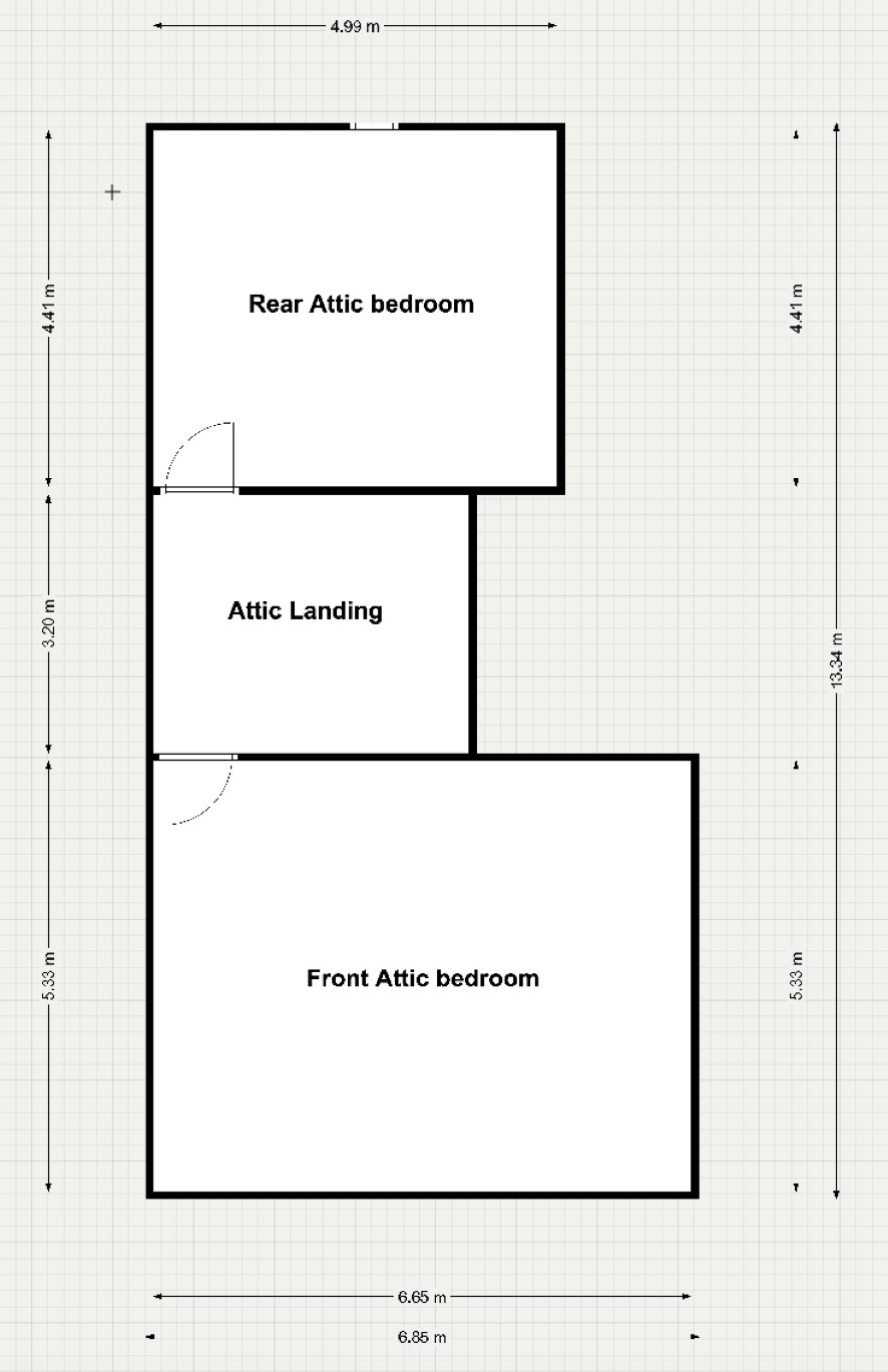 Clifton House: room dimensions. In metres (main house) Rear downstairs dining room:L: 4.95 W:5 H:3.5 Kitchen: L: 5.0 W:3.55 H:2.92 Hallway: L:3.9 W:3.7 H:3.5 Downstairs front reception/living room L:6.63 W:5.53 H:3.48 Downstairs toilet: L:1.42 W: 1.42 H2.9 Large main front Bedroom L:6.63 W:5.33 H:3.03 Back bedroom L:4.96 W:4.98 H:3 Bathroom upstairs L:4.95 W:3.49 H:2.55 First floor landing: L:4.93 W:3.92 H:2.55 Attic Landing/Shower room: L:3.9 W:3.4 H:2.57 Large Attic bedroom (left) L:4.93 W:4.98 H:2.23 Large Attic Bedrooms (right) L:6.6 W:5.36 H: 2.23 Cellar/heating utility room. L:6m W:5m H:2.3m There are also rear out buildings for storage, as well as an attached rear court, and a porch area, and exterior laundry room, to the rear of the kitchen.
