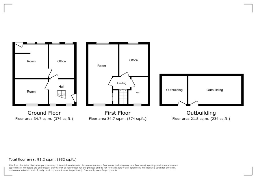 Room 21'3 x 10'3 Office 10'3 x 9'3 WC 8'2 x 6'8
