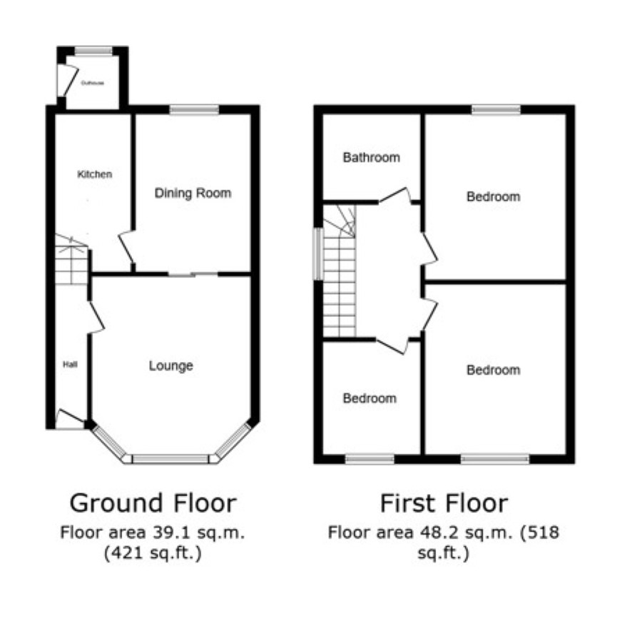 Hall Lounge 13' x 12'6 Dining Room 12'6 x 10'3 Kitchen 10'9 x 5'6