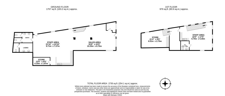 Front Sales Area 33'8 x 22' Rear Sales/Store Area 31'10 x 23'10 with stairs up Store Room Toilets