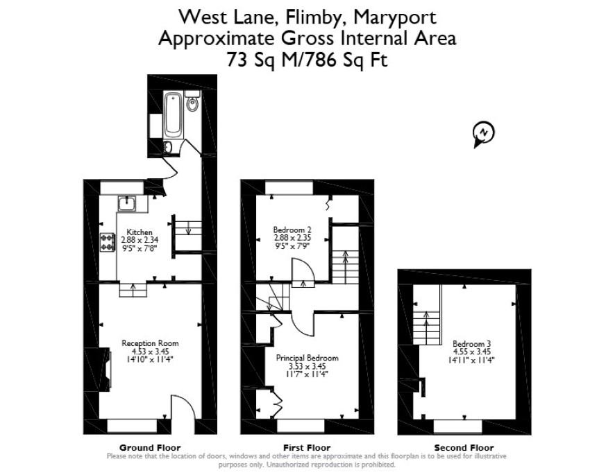 Reception Room 14'10 x 11'4 Kitchen 9'5 x 7'8 Bathroom