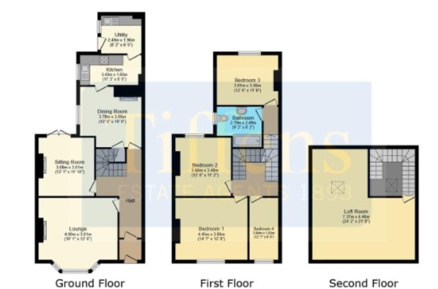 Rear Bedroom 12'6 x 11'9 Bathroom 9'3 x 8' Front Bedroom 12'6 x 6' Front Bedroom 14'9 x 12'9 Rear Bedroom 13' x 11'