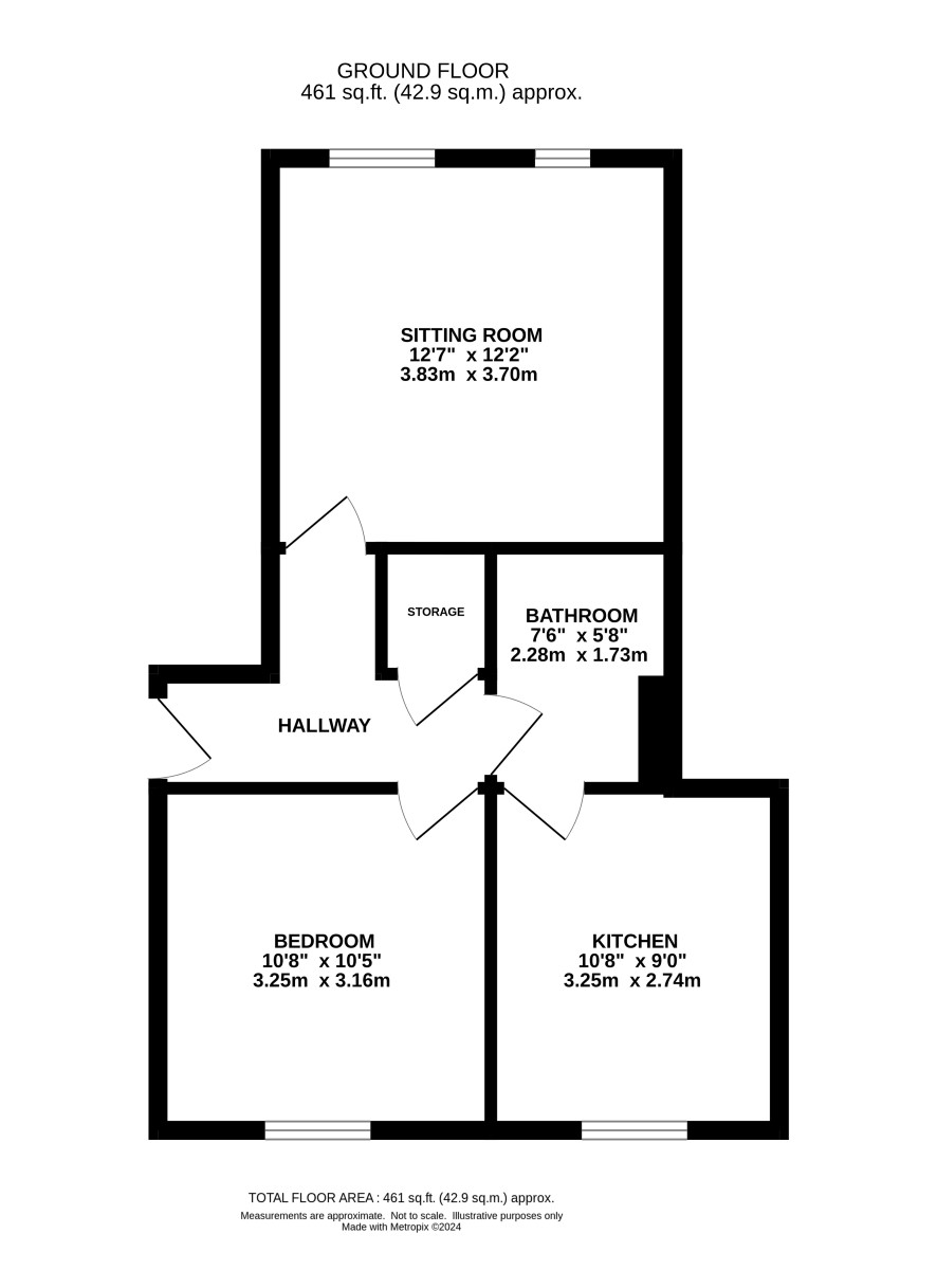 Personal entrance door, entrance hall with built in storage, double bedroom, kitchen, sitting room and bathroom