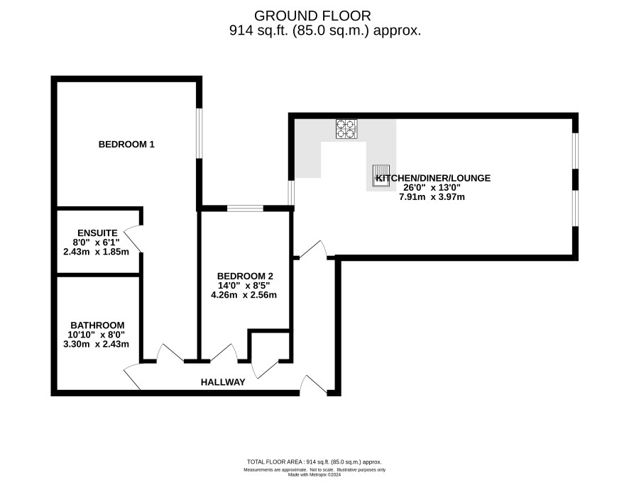 Second floor apartment with two double bedrooms, ensuite, family bathroom and open plan lounge/kitchen. Some improvements are required within the property but once completed, this apartment can achieve a rental income of £10,200 per annum. Ground rent £50 Service charge £3403.42