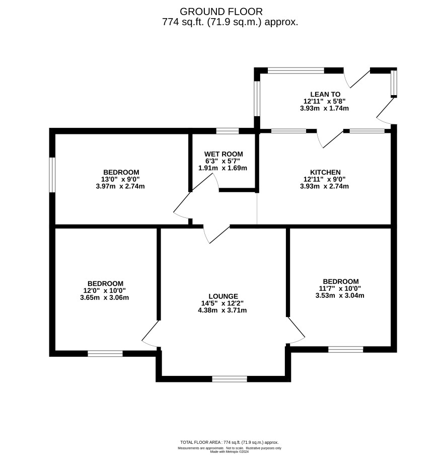Kitchen, inner hall, living room, three double bedrooms, conservatory and a wet room