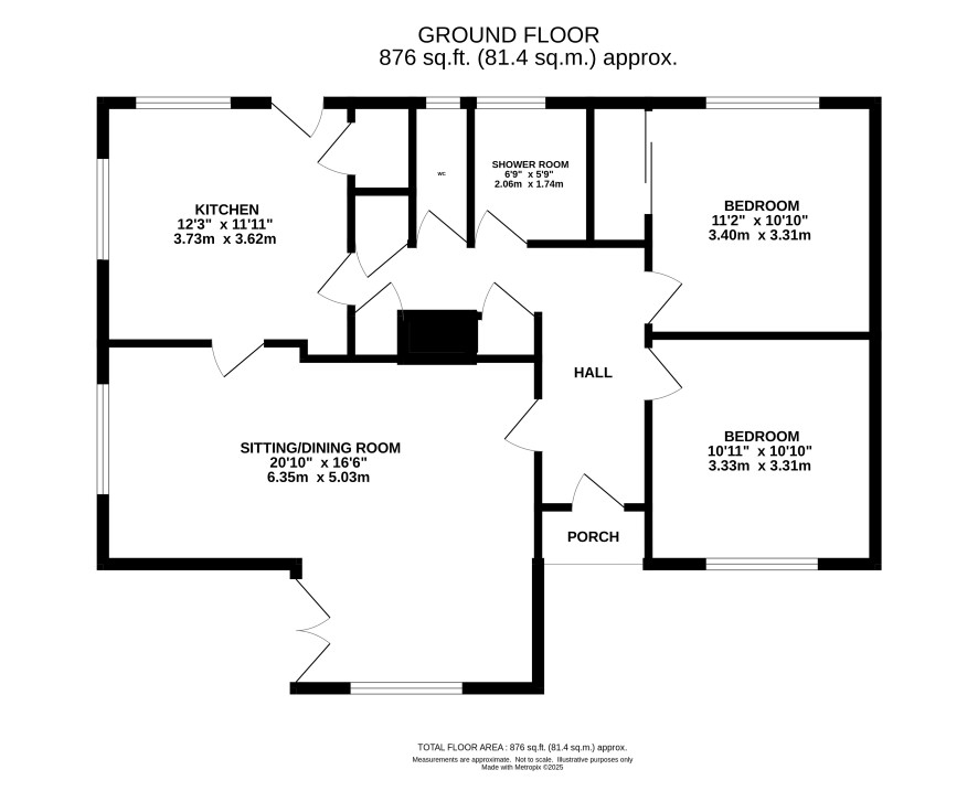 Hall, living/dining room, kitchen/breakfast room, two double bedrooms, wet room, separate WC