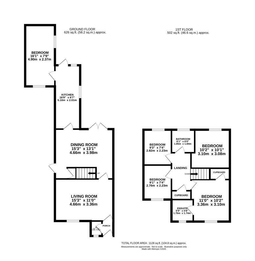 Four bedrooms, one ensuite and a family bathroom.